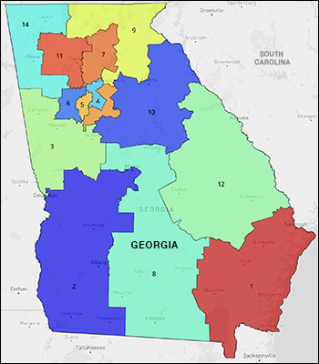 To see an interactive map of the Georgia Congressional Districts and GA-14, go to: Dave’s Redistricting App.